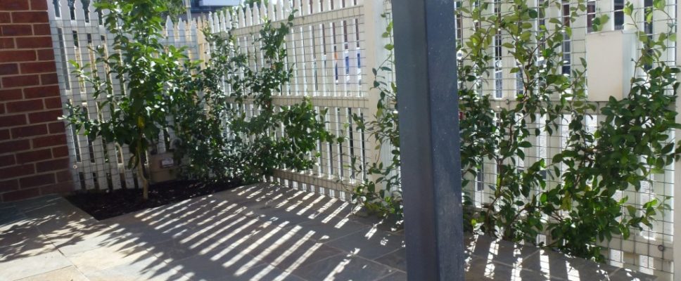 A new kitchen garden with espalliered Lemons & Limes and a potted Lemon for some canopy and screening. More