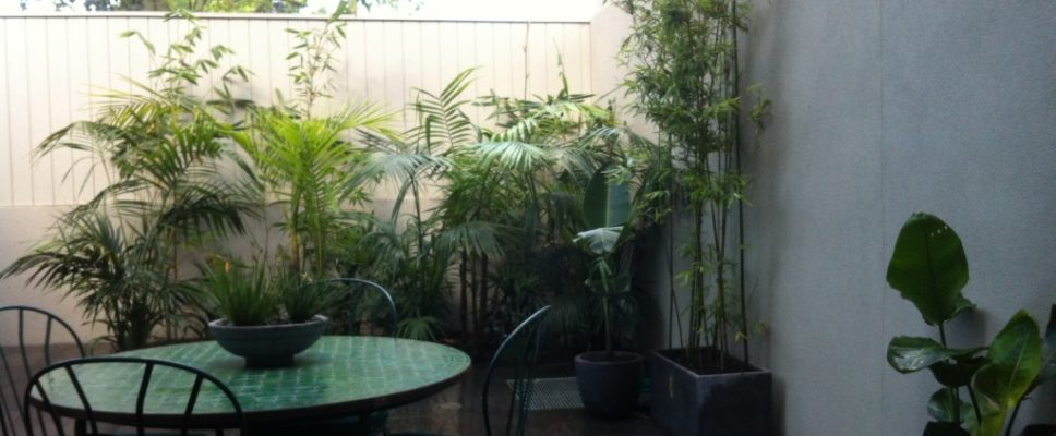 Inner city houses and the window view to the old timber paling fence. A standard dilemma in most inner city Melbourne gardens. Make the most of the sideway