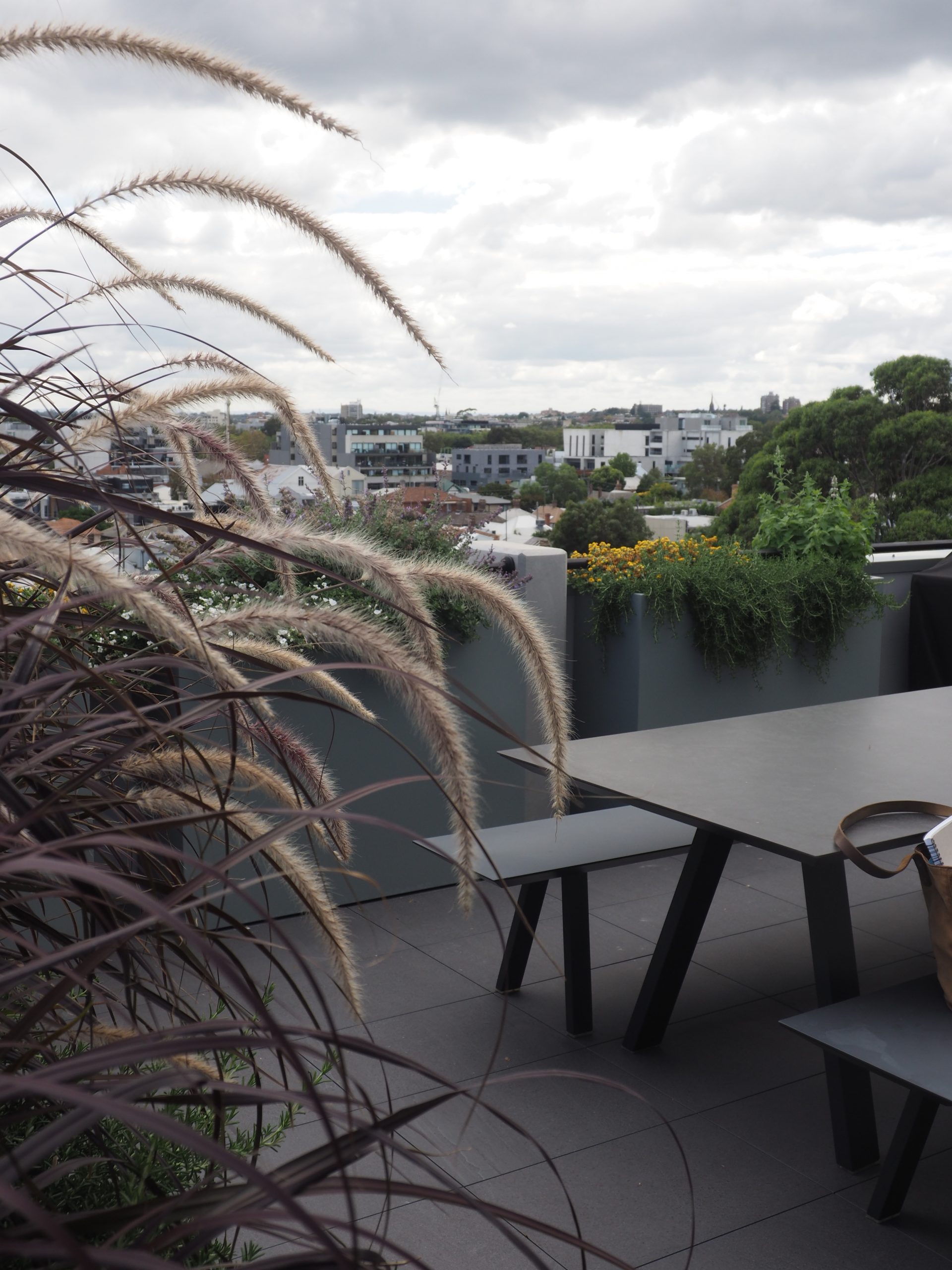 We were able to create a stylish, uncluttered, garden that complimented the contemporary architecture of the building. Our clients requested a design that incorporated the impressive views across to the city. Our design utilised the views to maximum effect, while still creating screening for a prominent unattractive circa 70s building and the direct views to a neighbouring apartment on the west side.