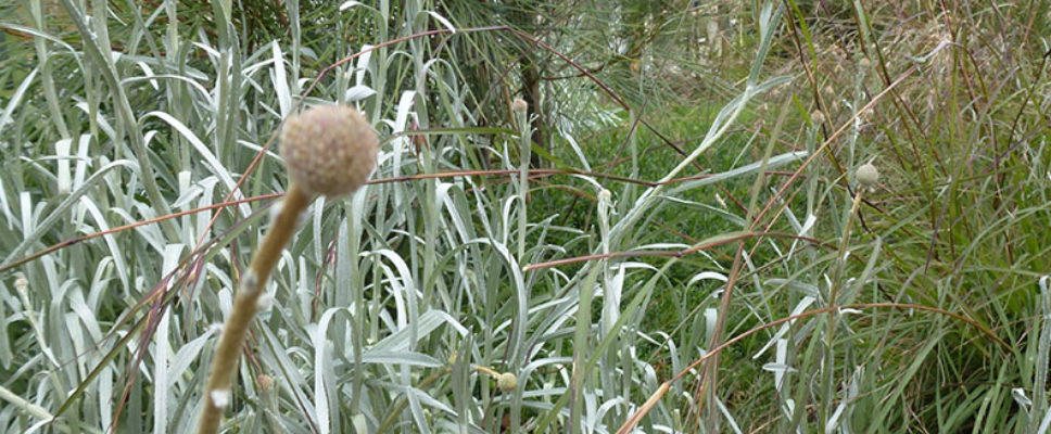 The brief covered all – create a vegie patch, somewhere to sit, maybe some green at the bedroom window and use Australian natives in the plant selection. The planting includes coastal ground covers, that will cope with both the sun and wind, a dwarf Corymbia to give a burst of colour and possibly attract the odd magpie. And, not quite native, but a Crepe Myrtle ‘Zuni’ from Flemings Nurseries which always does well in the heat and mixes in well with local plants.
