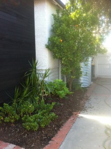 Eventually the walls of the garden will be covered by evergreen climbers, and a native Tristaniopsis will shade the hot western sun, and create a lovely canopy for summer entertaining.