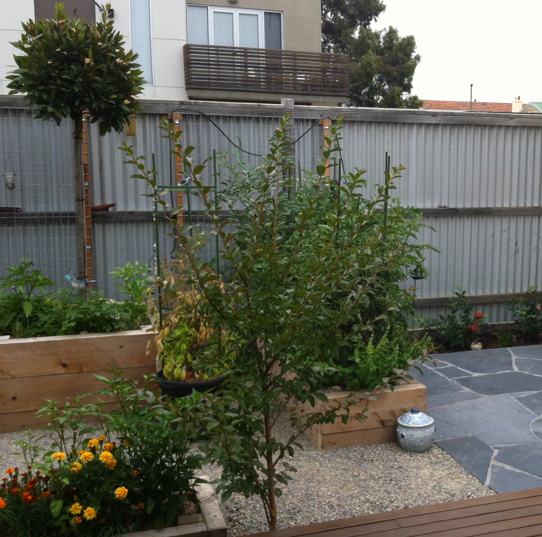 Here is a selection of vegetable and kitchen gardens IMG_0961 IMG_0962 IMG_0965 IMG_0922 IMG_0927_2 IMG_0930 IMG_0669 IMG_0667 IMG_0102 IMG_0185we have worked on recently.  All of these vegetable plots are designed for small gardens.  Wine barrels with multi grafted apples and nectarines, raised tank planter salad and herbs, raised planters with strawberries, oregano, parslely, rosemary, thyme.  All edible gardens in small spaces from, Brooklyn to Northcote, Brunswick, Coburg.