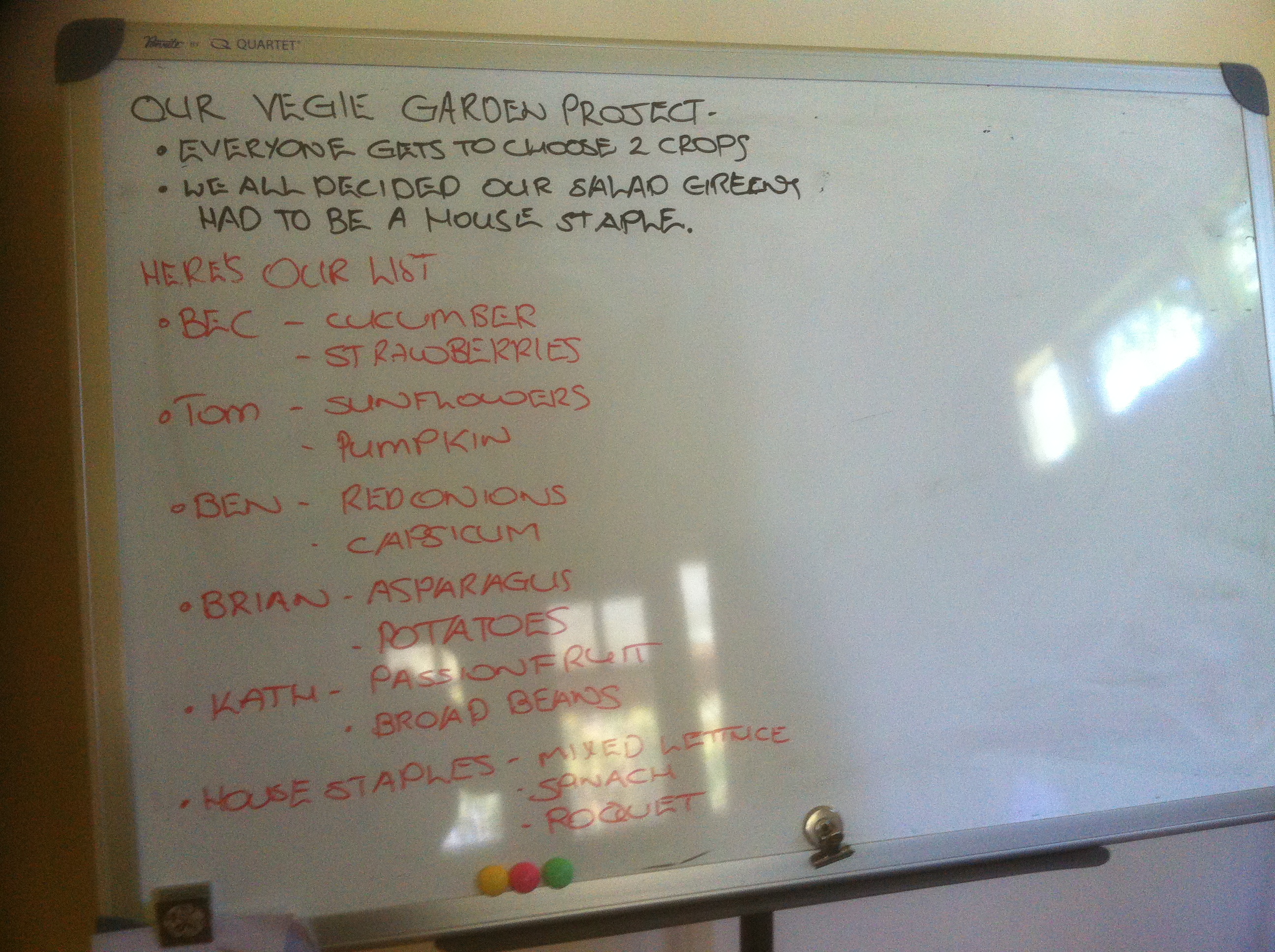 2nd stage – well this has inspired a summer makeover of the front garden.  Since we started with our whiteboard wish list I’ve cleared out the weeds, discovered self sown tomatoes, a few random potatoes.  The tomatoes have been staked, the soil turned over, a new crop of lettuce has gone in.  I’m using seedling lettuce as it will deliver a quicker crop for us.